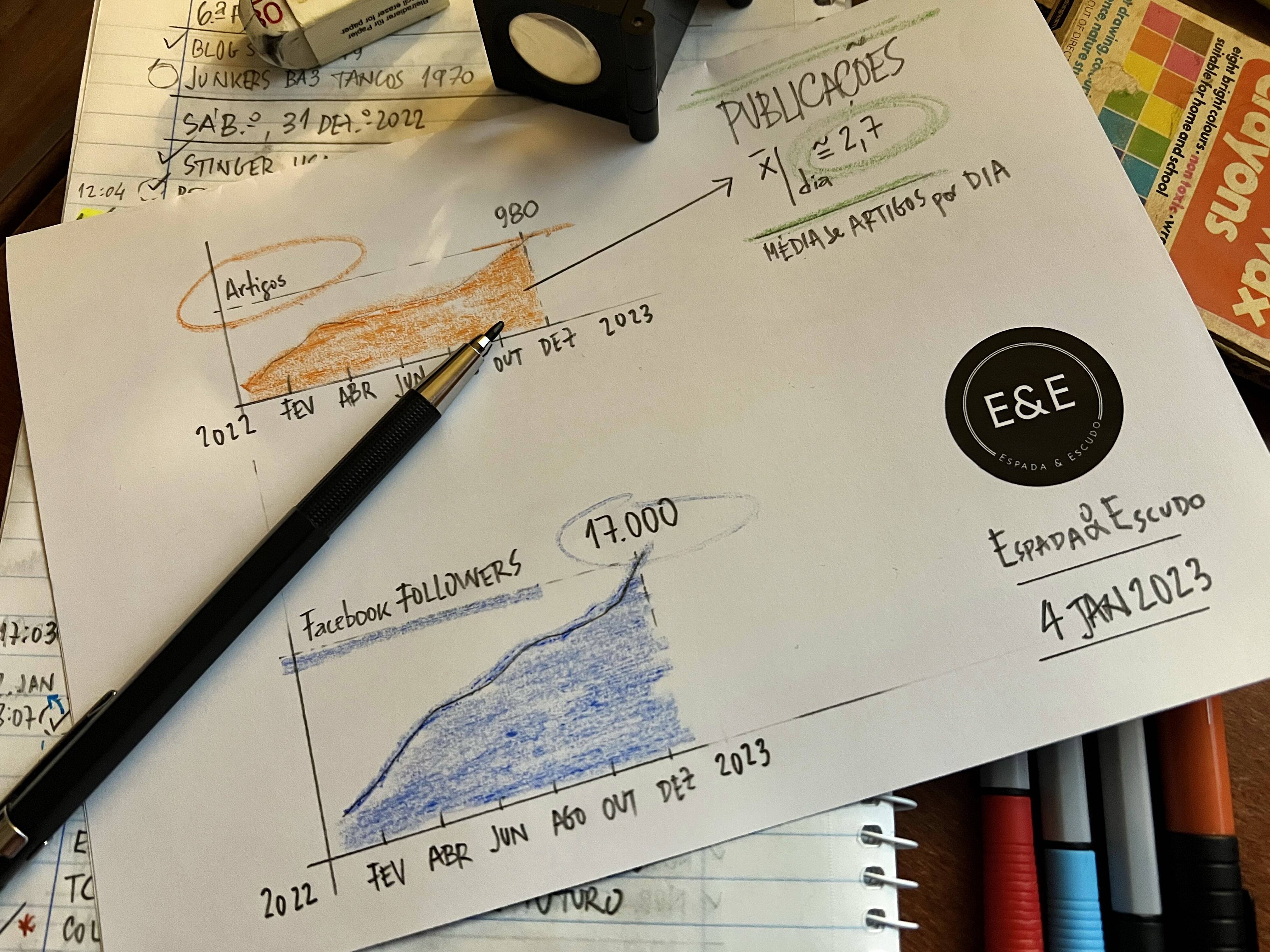 Portugal 4 de Janeiro de 2023 O projecto "Espada & Escudo" (E&E) iniciou-se há precisamente 1 ano, no dia 4 de Janeiro de 2022. Resultado da vontade e determinação de uma agremiação informal de interessados nos temas da defesa e da segurança, da sua história e do seu quotidiano, e com o objectivo de prestarem, com base numa foto ou num vídeo, informação de forma curta, concreta e concisa, sempre com total isenção, independência e factualidade. Sem qualquer suporte ou objectivo, directo ou indirecto, de âmbito comercial, doutrinário ou político, e seguindo as boas práticas de informação a partir de fontes abertas ("Open Source Intelligence", OSINT) o E&E produziu e publicou, na rede social Facebook e replicados no seu Blog ( https://espada-e-escudo.blogspot.com/ ) , um total de 980 artigos, que correspondem a uma média diária de 2,7 publicações, tendo acumulado mais de 17 000 seguidores e muitas centenas de milhar de visualizações. Em finais de Maio de 2022 fomos convidados a colaborar com a publicação digital independente VM TV (ERC: 126841), de Vieira do Minho, onde, desde então, vimos publicados, na sua categoria "Caderno de Defesa" ( https://vmtv.sapo.pt/category/cadernodedefesa/ ) , mais de 3 dezenas de artigos sobre as Forças Armadas Portuguesas. Nestes 12 meses, publicámos 4 magazines trimestrais ( https://www.espada-e-escudo.org/magazine/index.html ), onde, de forma paginada, em formato digital (PDF), seleccionámos, em cada um, cerca de 3 dezenas dos artigos dos vários conteúdos publicados no trimestre anterior. A todos os que nos ajudam, com a sua leitura, partilha e opinião, o nosso muito obrigado. São a energia que nos alimenta e motiva, todos os dias, na recolha, selecção e produção de informação. |